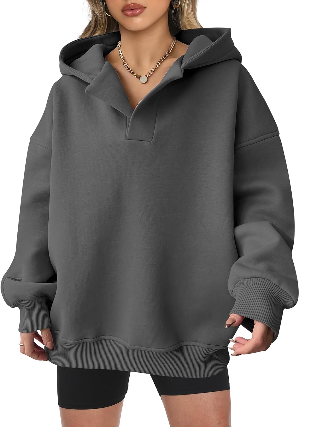 ANRABESS Womens Oversized Hoodies V Neck Sweatshirts Fleece Long Sleeve Pullover Y2K Clothes 2025 Fall Trendy Outfits