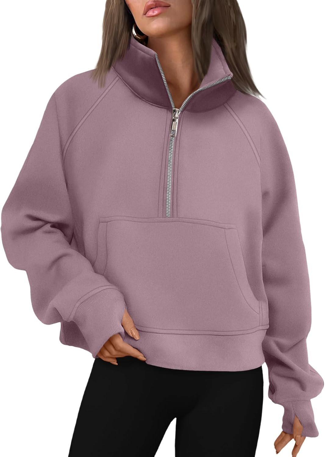 AUTOMET Womens Sweatshirts Half Zip Cropped Pullover Fleece Quarter Zipper Hoodies 2026 Fall Fashion Outfits Clothes