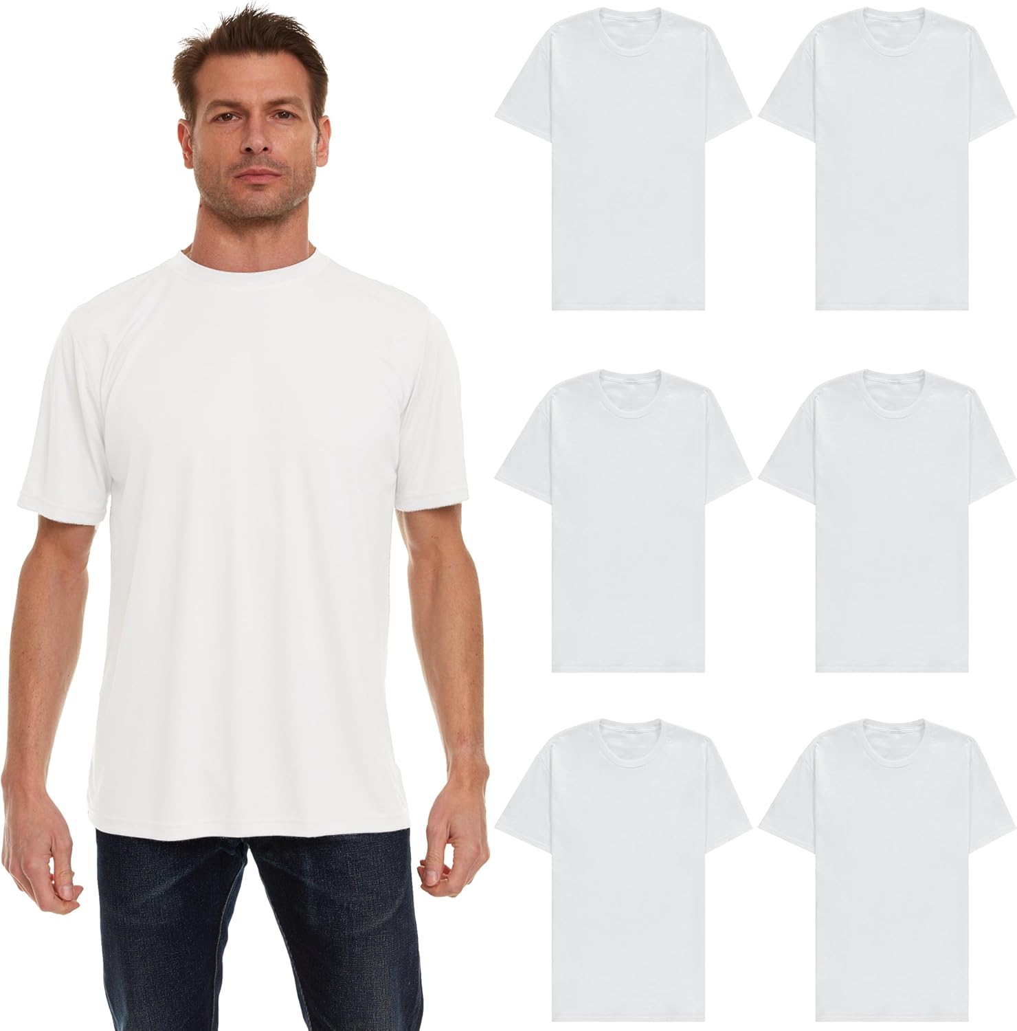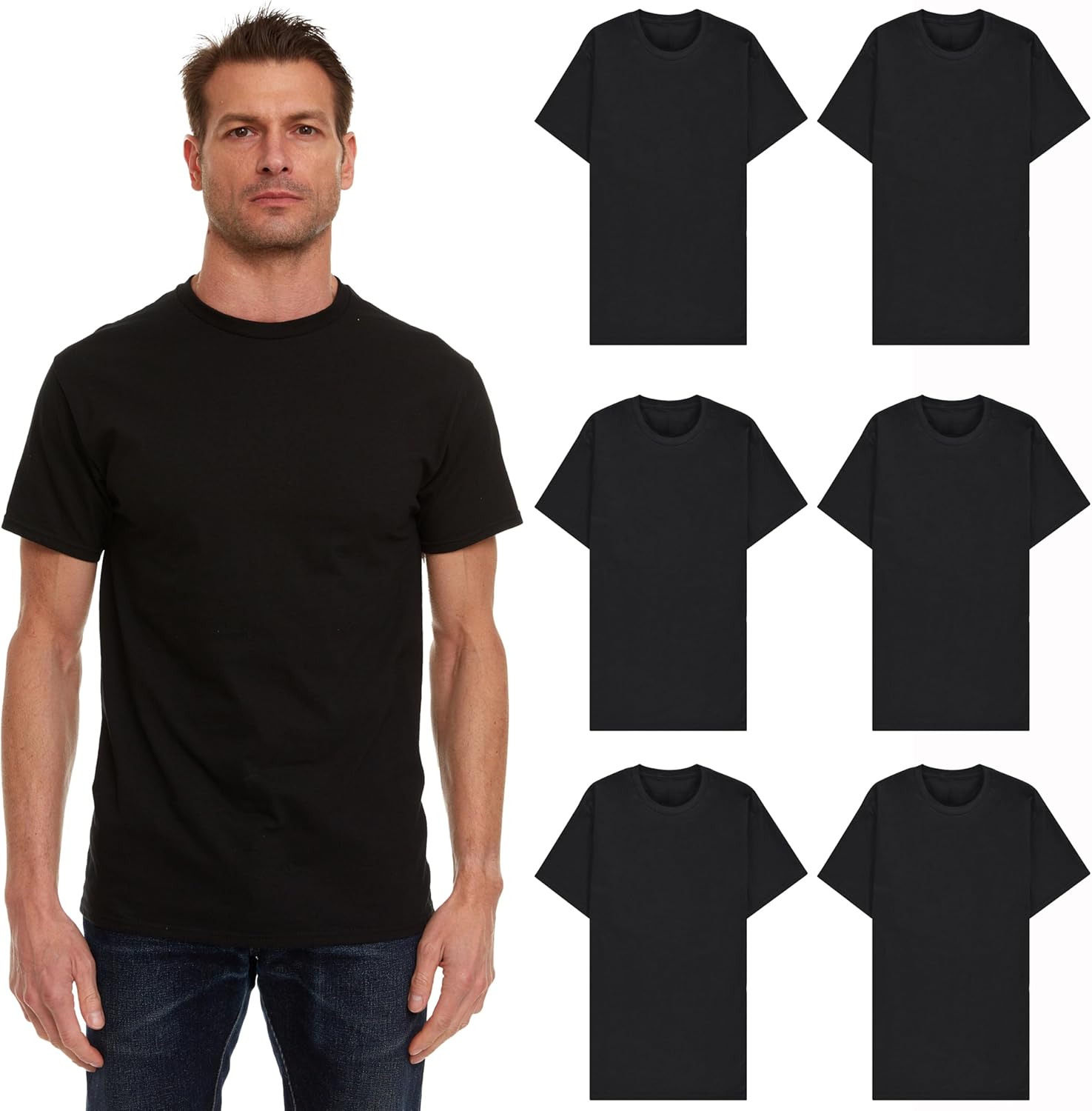 A crew neck short sleeve tee shirt is a wardrobe staple, perfect for beachy summer days, everyday classic looks, an undershirt for wearing under button downs, or the perfect workout shirt. Colors stay bright even after many washes and wears. Get it in bulk for screen printing your own designs, donating to your favorite charities, or for big families. We offer plus sized shirts up to 7XLarge for your convenience.