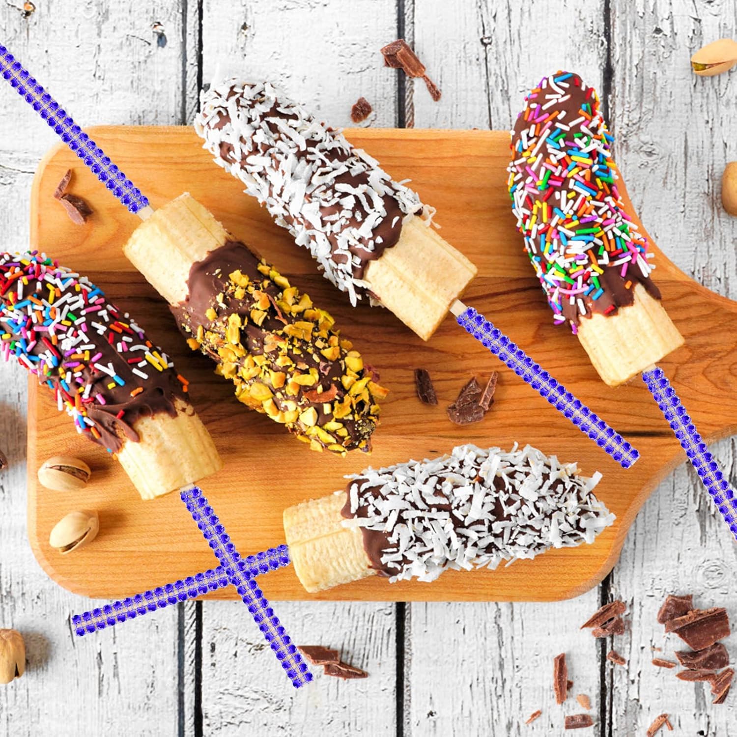 Coldairsoap Candy Apple Sticks, 24P Bling Sticks with 30p Bags & 1 Roll 25yd Glitter Ribbon, for Christmas & Halloween DIY Candy Apple Kit
