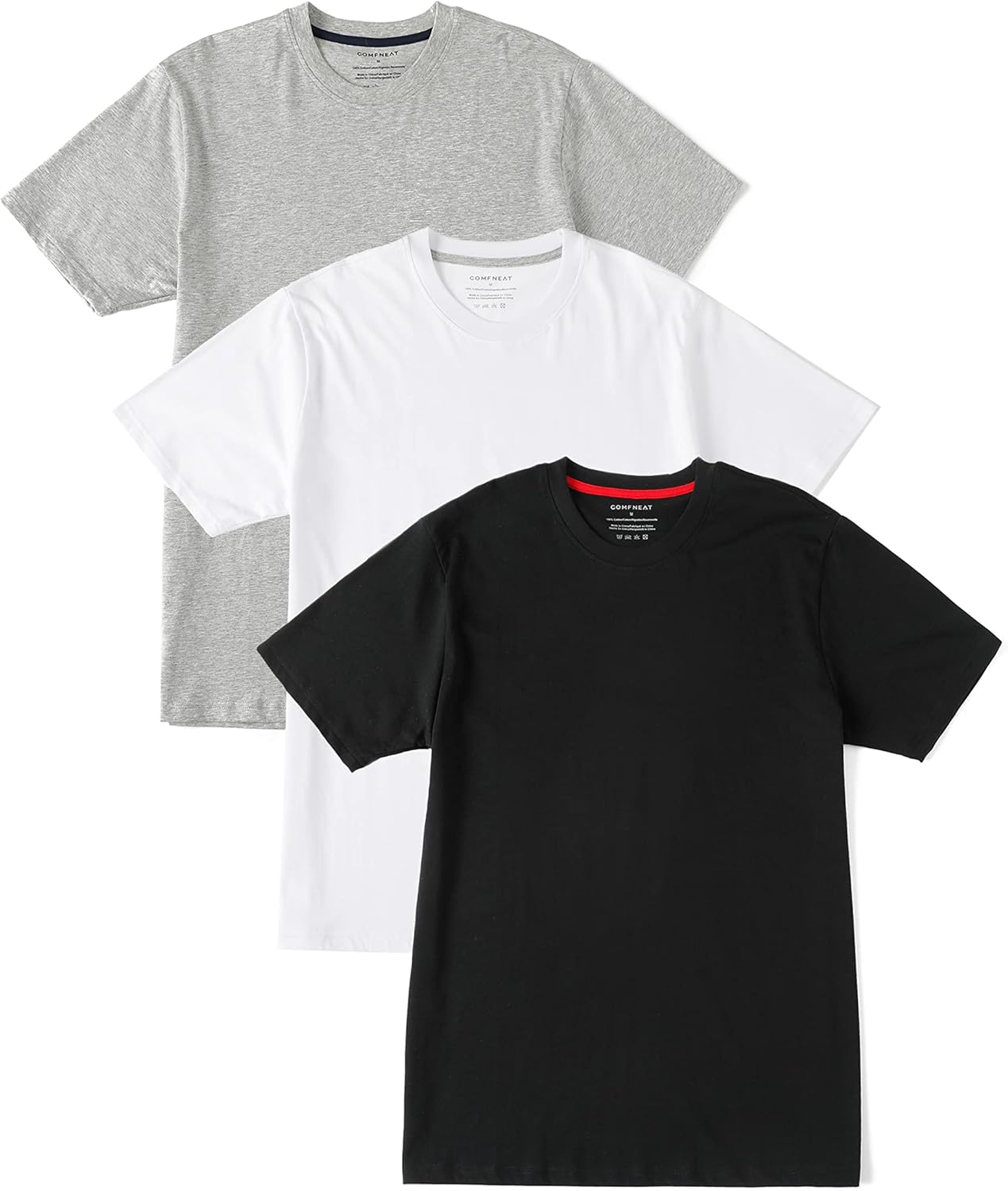 Comfneat Men’s 3-Pack Lightweight T-Shirts Cotton Crew Neck Regular Fit Solid Tee