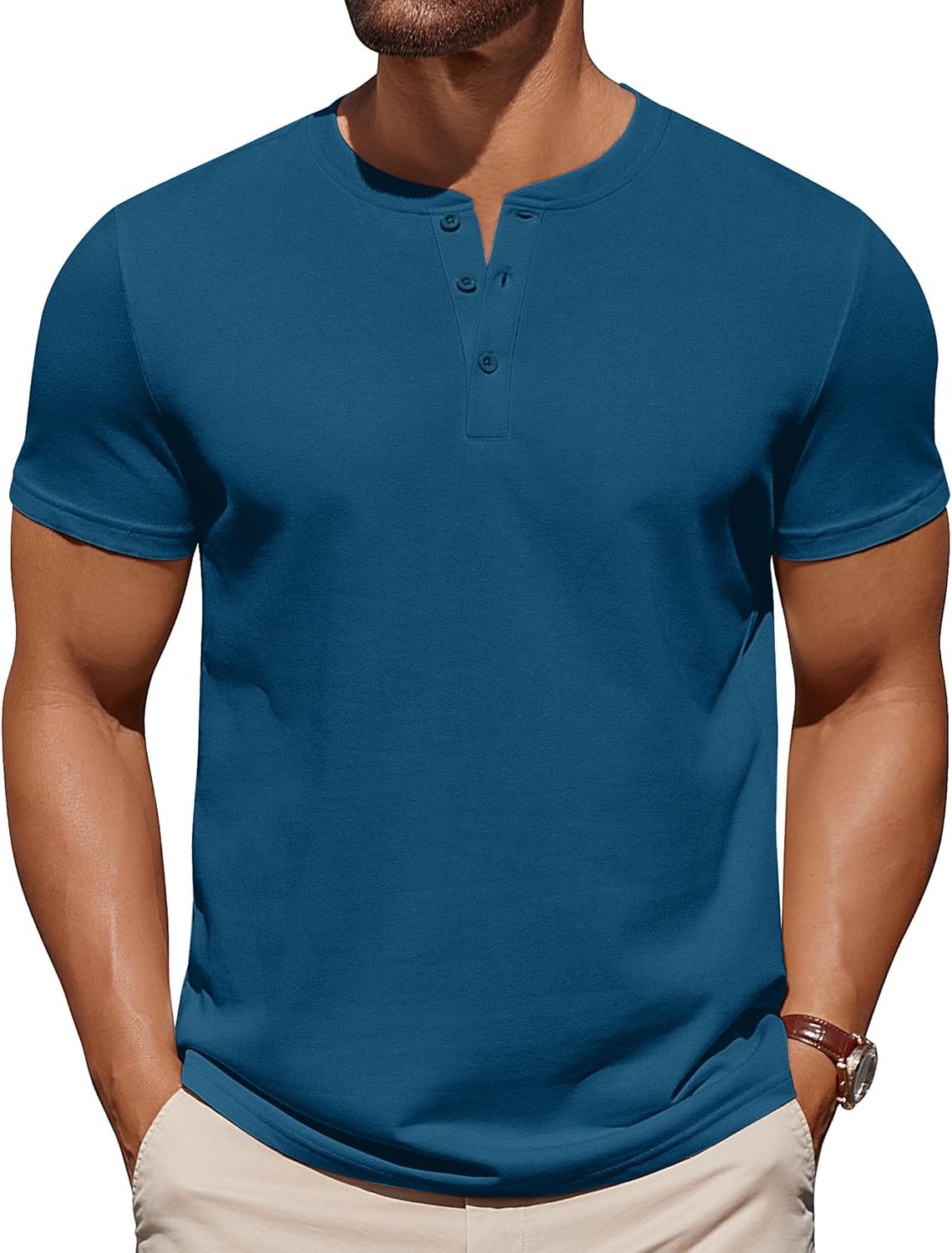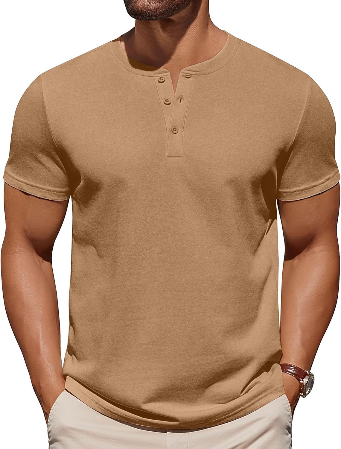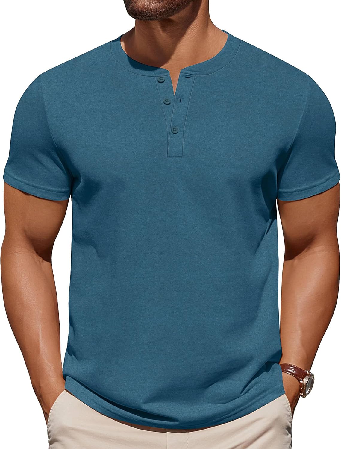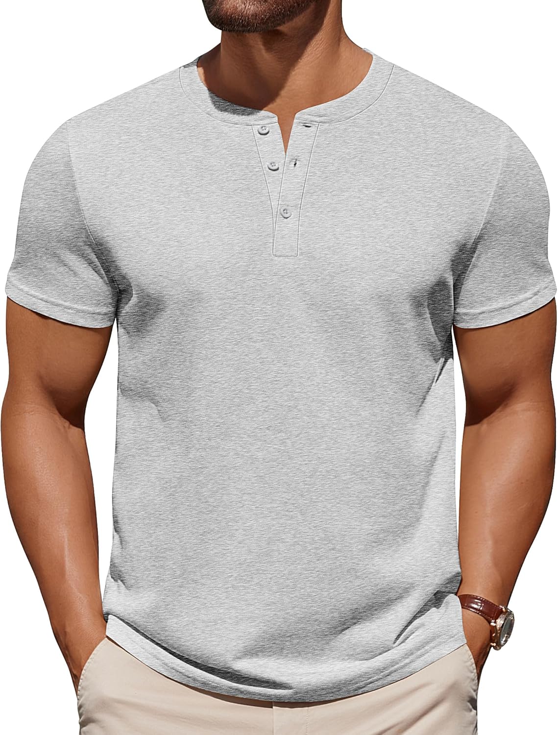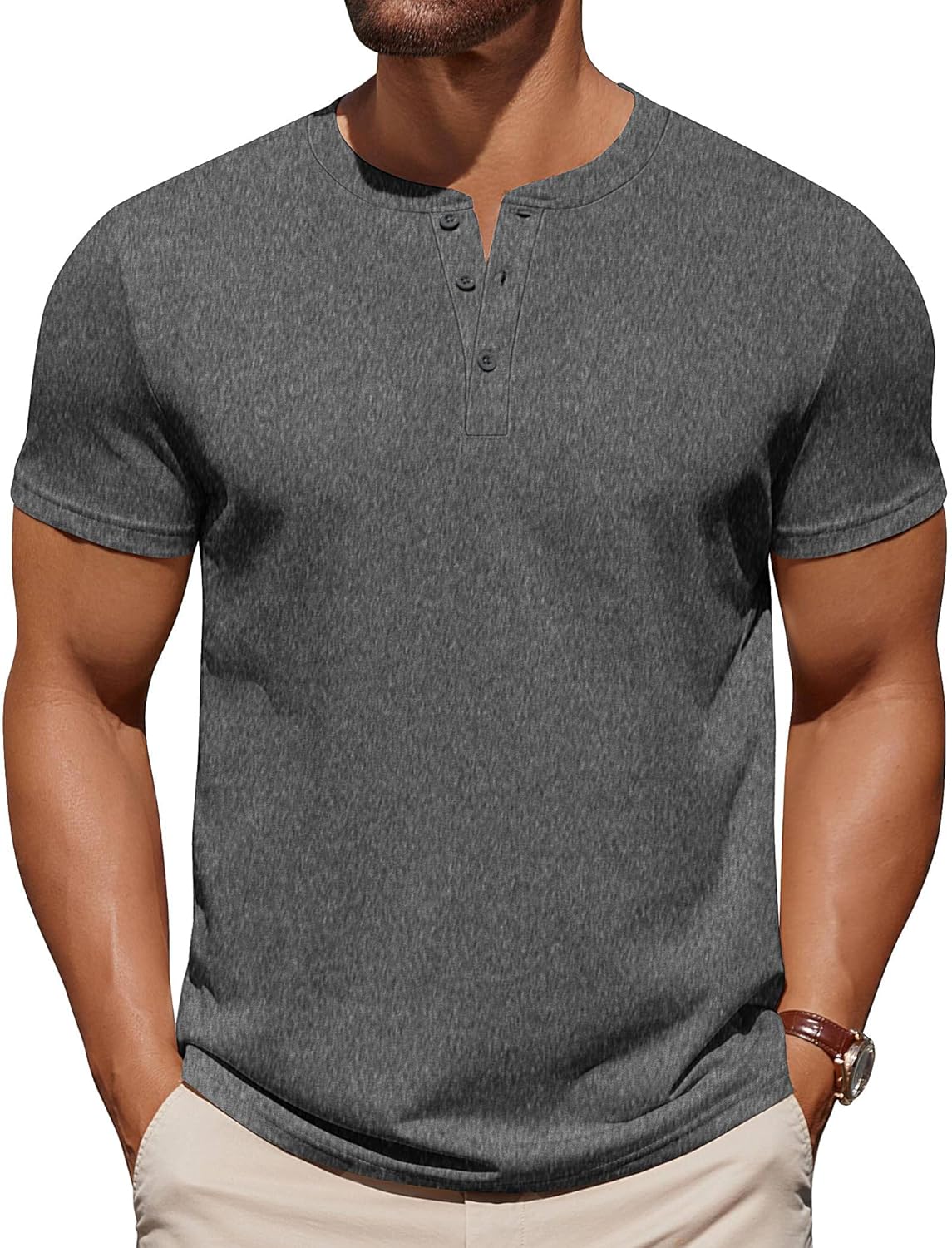 COOFANDY Mens Cotton Henley T-Shirts Short Sleeve Button Casual Basic Tees Work Shirts with Split Side