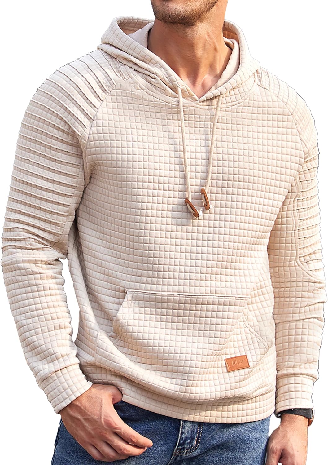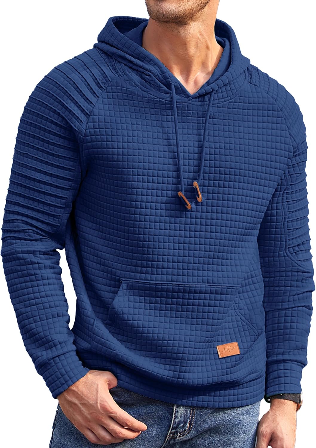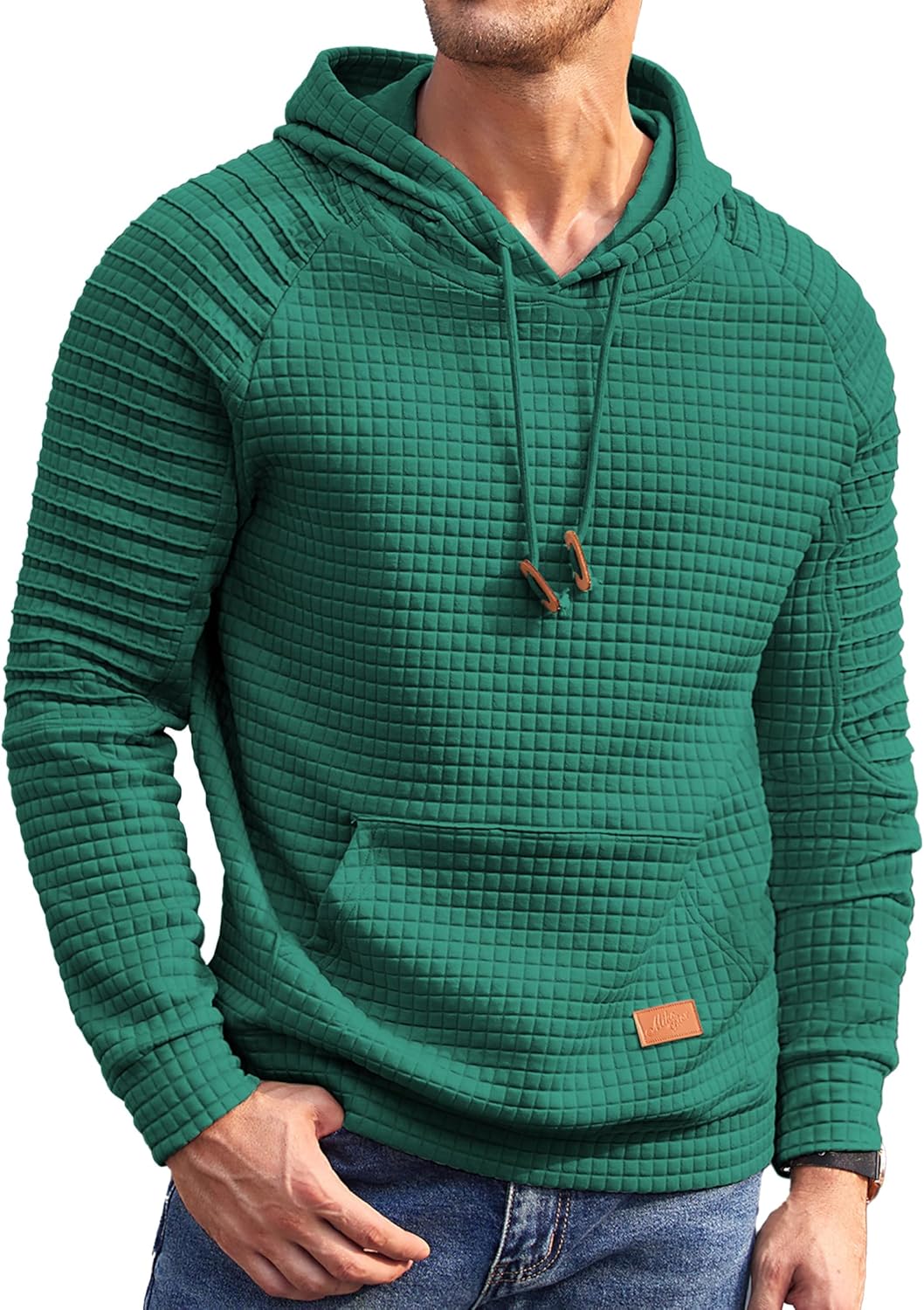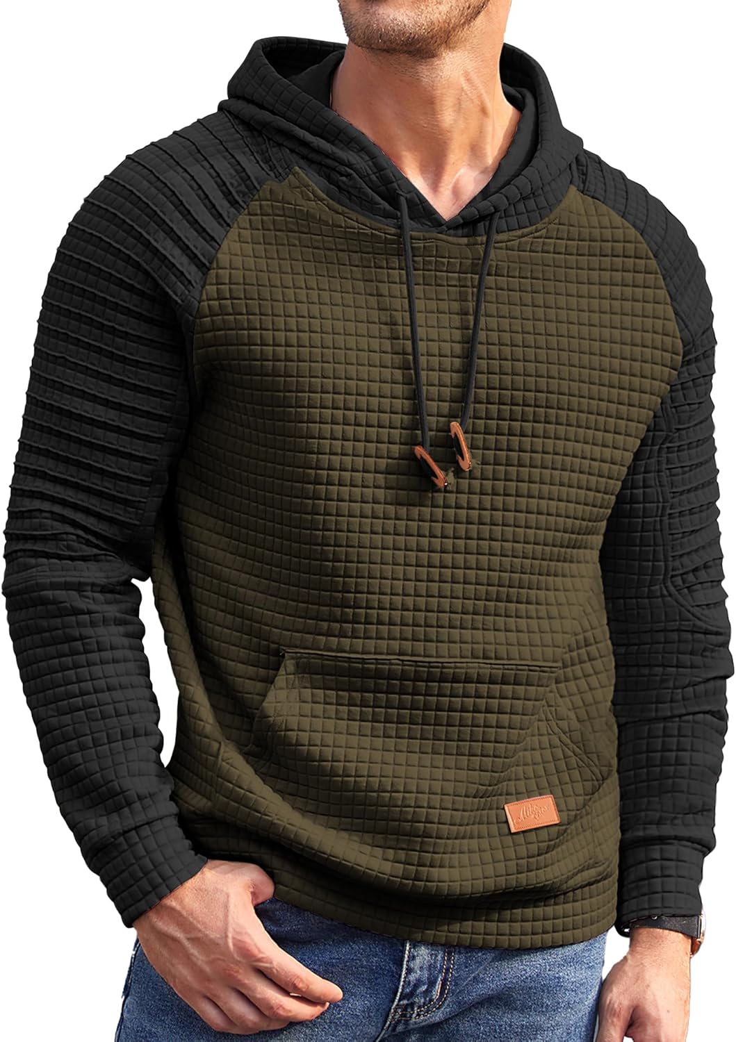 COOFANDY Mens Hoodies Pullover Casaul Long Sleeve Drawstring Waffle Knit Hooded Sweatshirt with Kanga Pocket