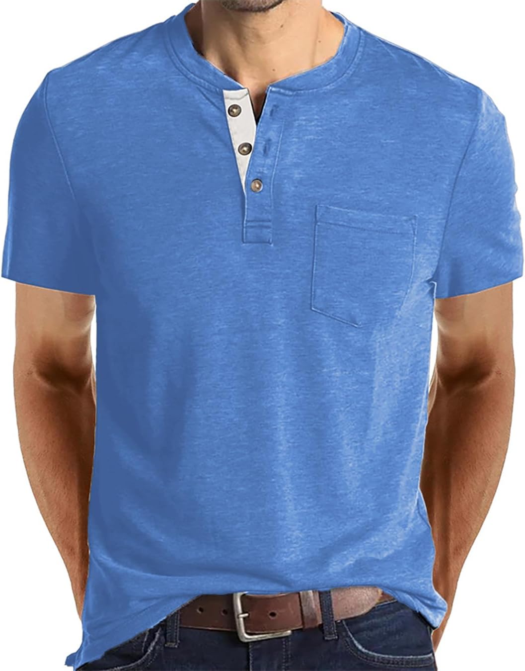 To welcome the warm summer days, we add more lively colors to this Henley T-shirt, suitable for different places to wear and match.