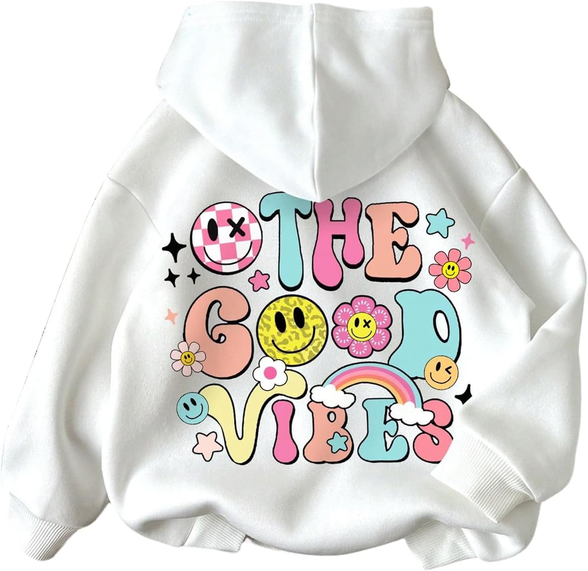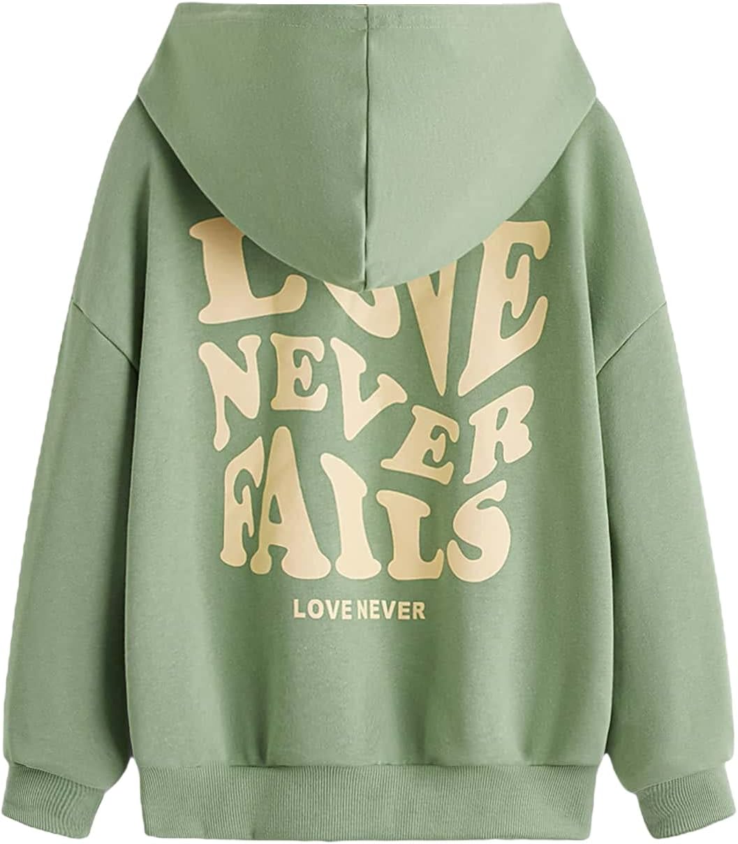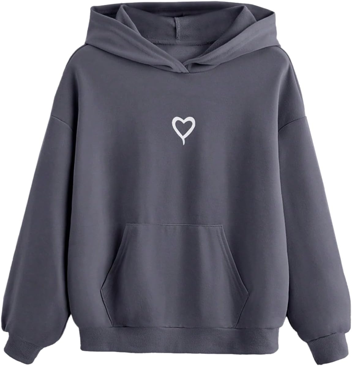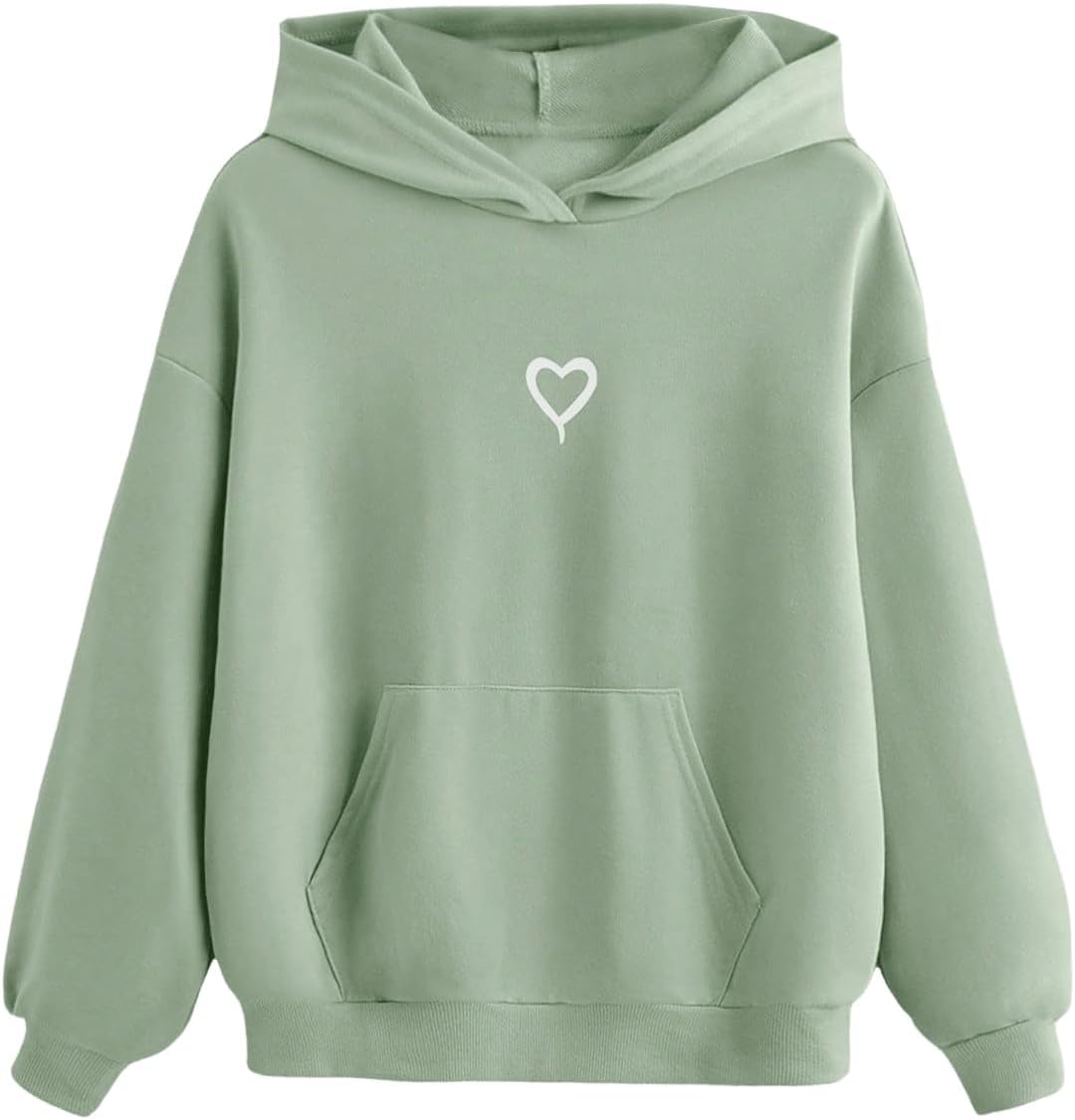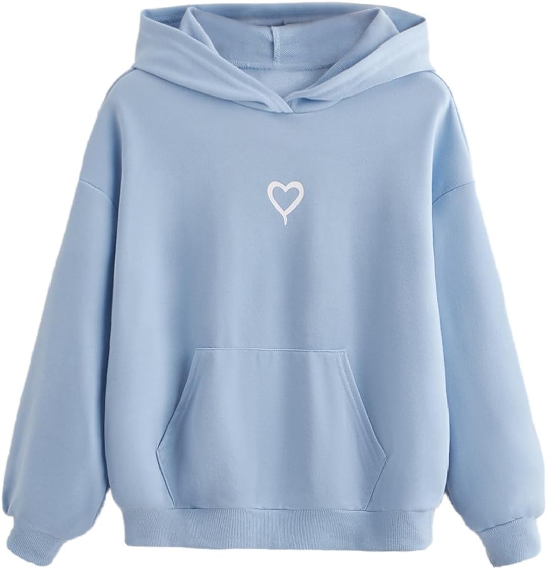 - Heart print, hooded neck, long sleeve, drop shoulder, pullover tops