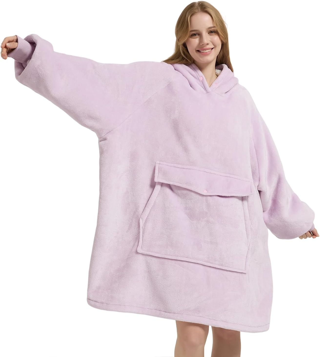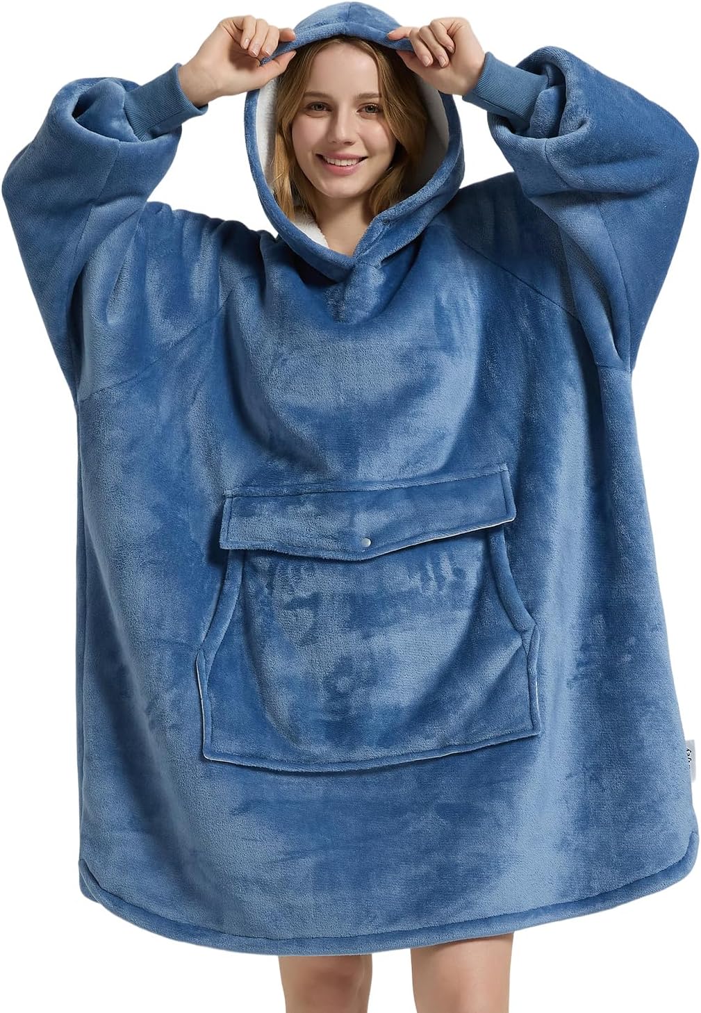 Krifey Wearable Blanket Hoodie, Oversized Sherpa Fleece Sweatshirt with Giant Pocket, Birthday Gifts for Women, Mom, Sister, Dark Gray