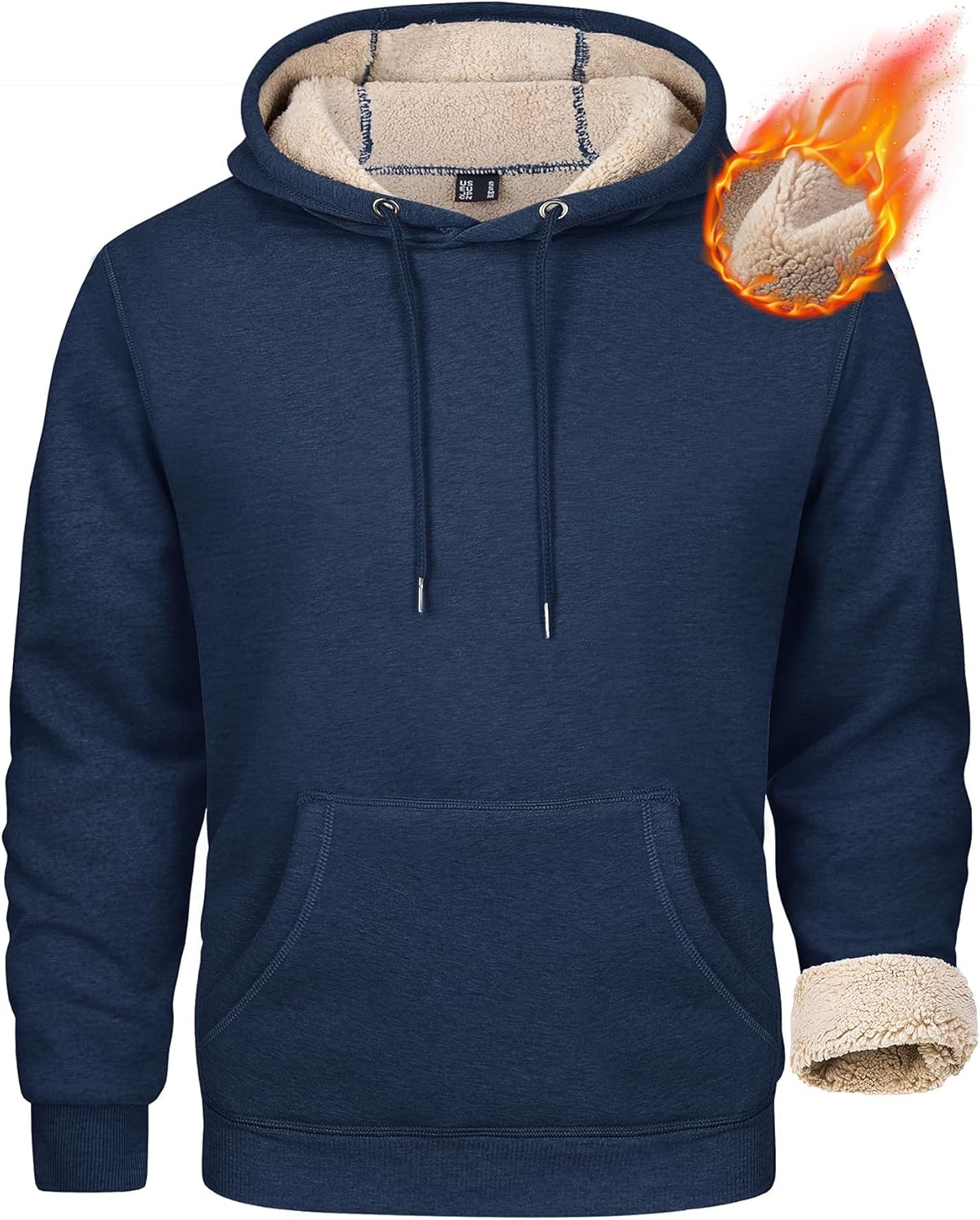 MAGCOMSEN Men’s Heavy Hoodie Sherpa Fleece Lined Pullover Thick Winter Hooded Sweatshirt