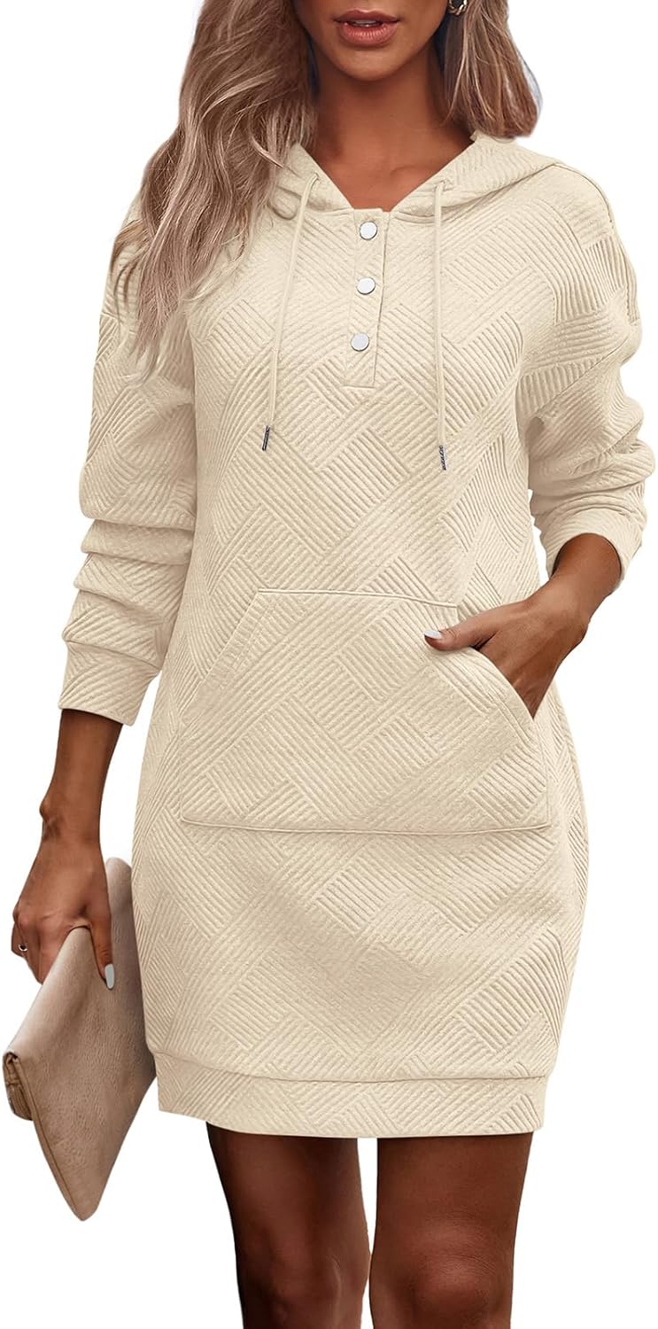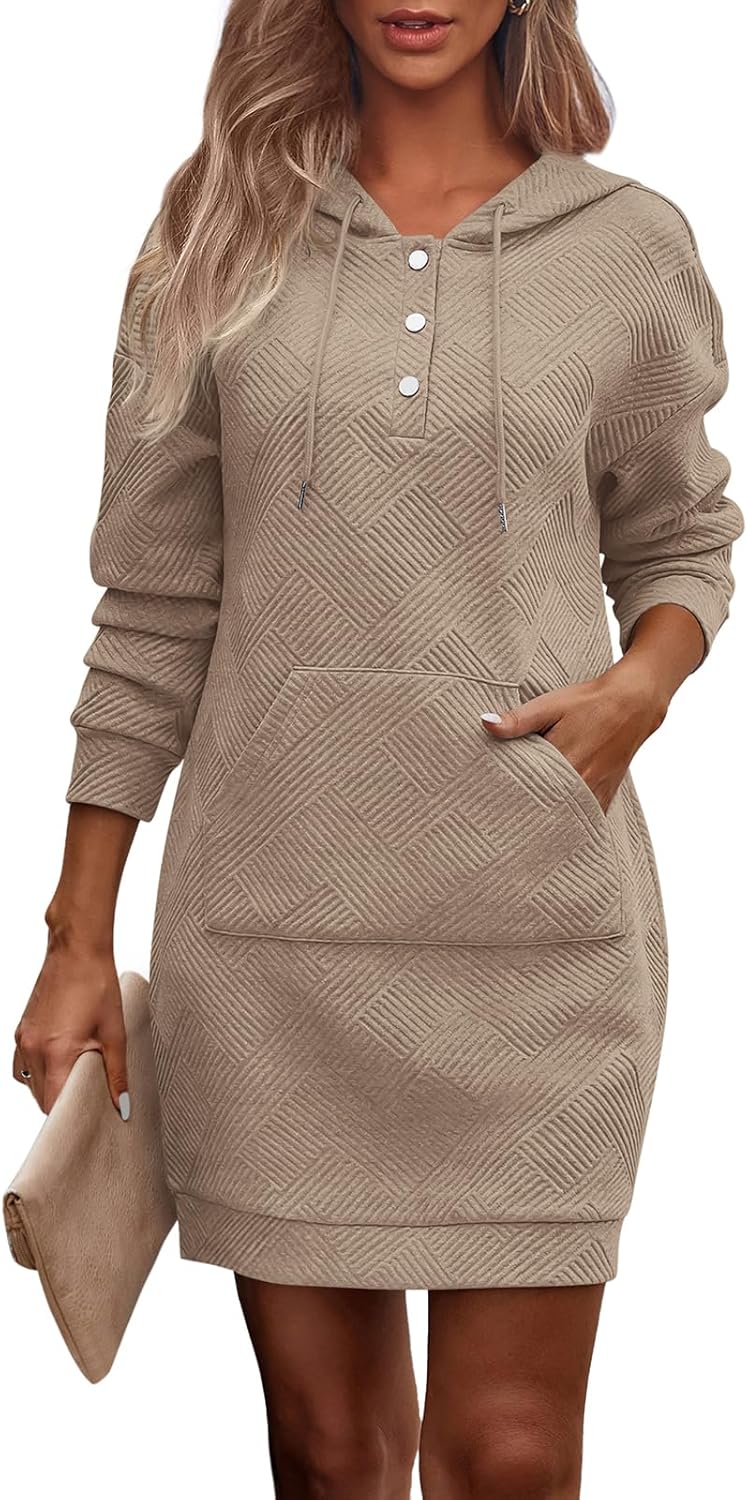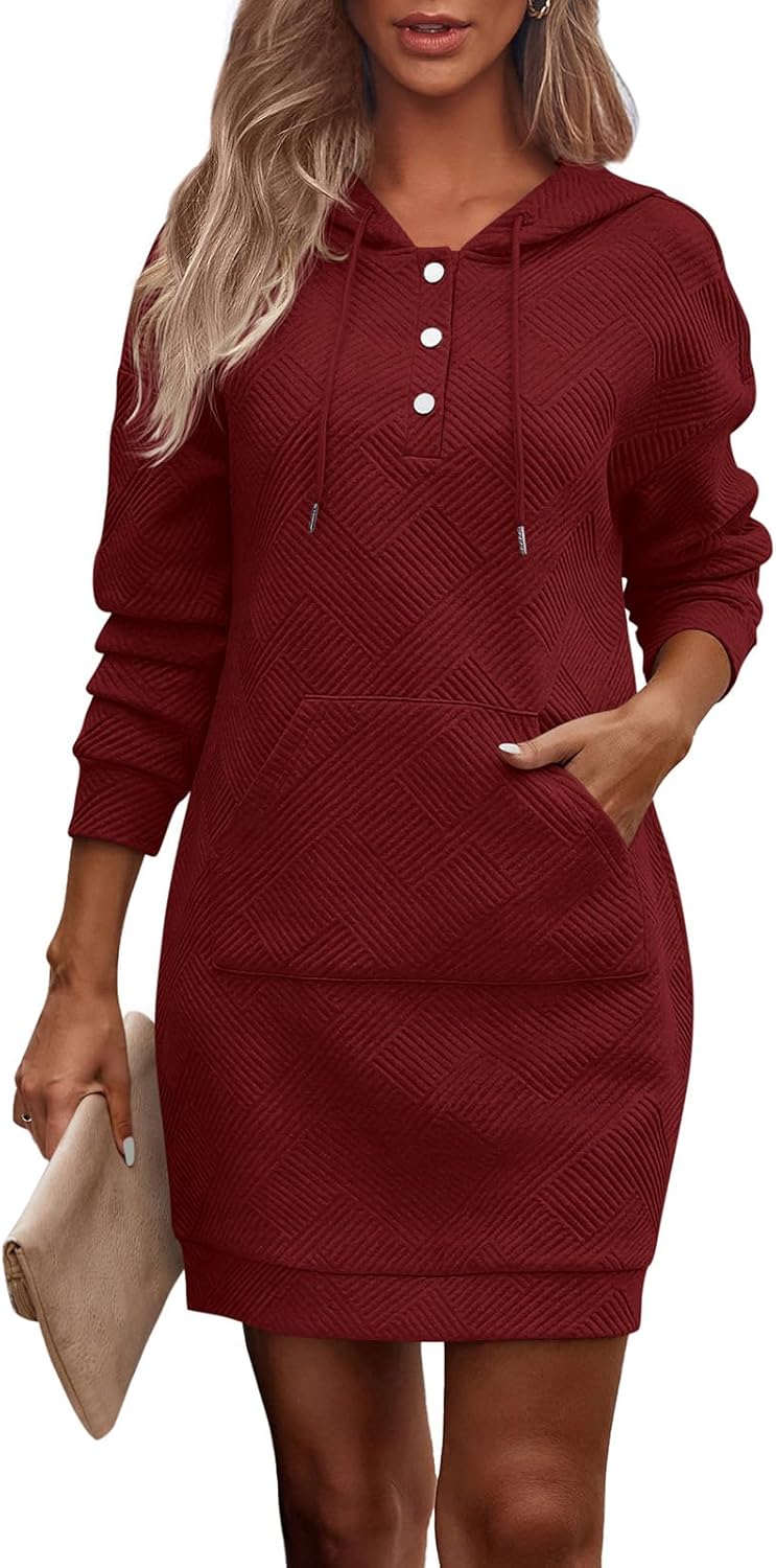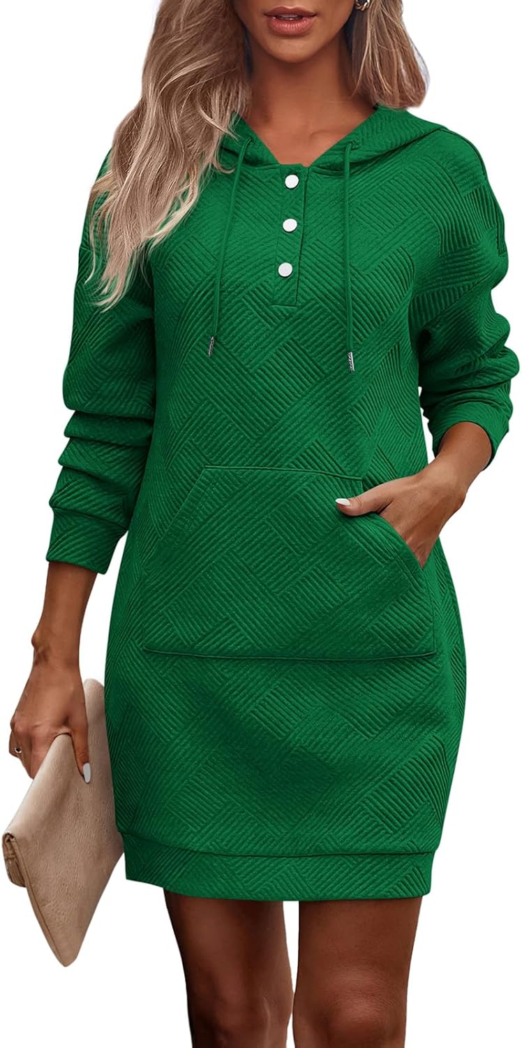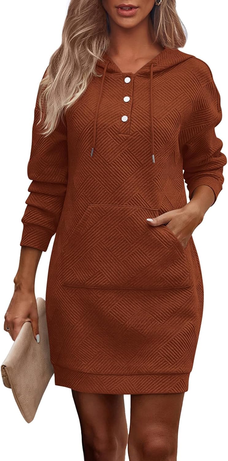 PRETTYGARDEN Womens Long Sleeve Hoodies Dress 2025 Fall Texture Button Oversized Sweatshirts Winter Dresses with Pockets