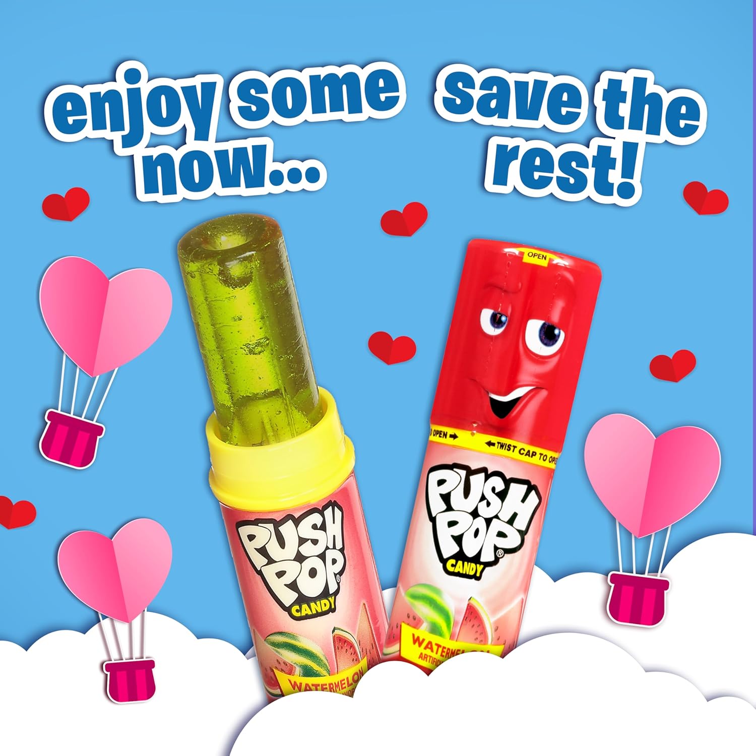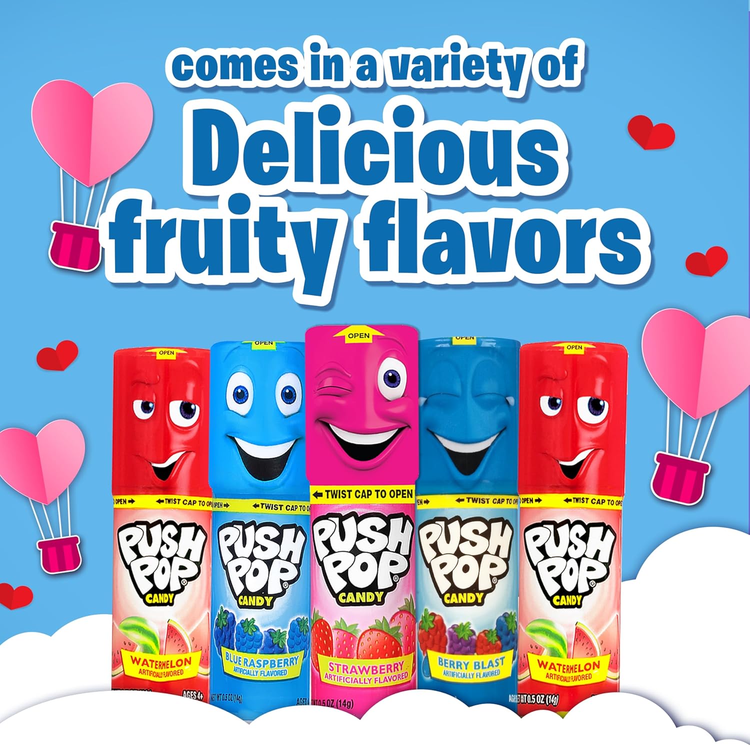 Push Pop Valentine’s Candy Variety Pack, 24Ct Bulk Individually Wrapped Lollipops in Assorted Flavors, Full Size, Fun Hard Candy For Birthday Parties, Valentine’s Gifts, Goodie Bags, Party Favors