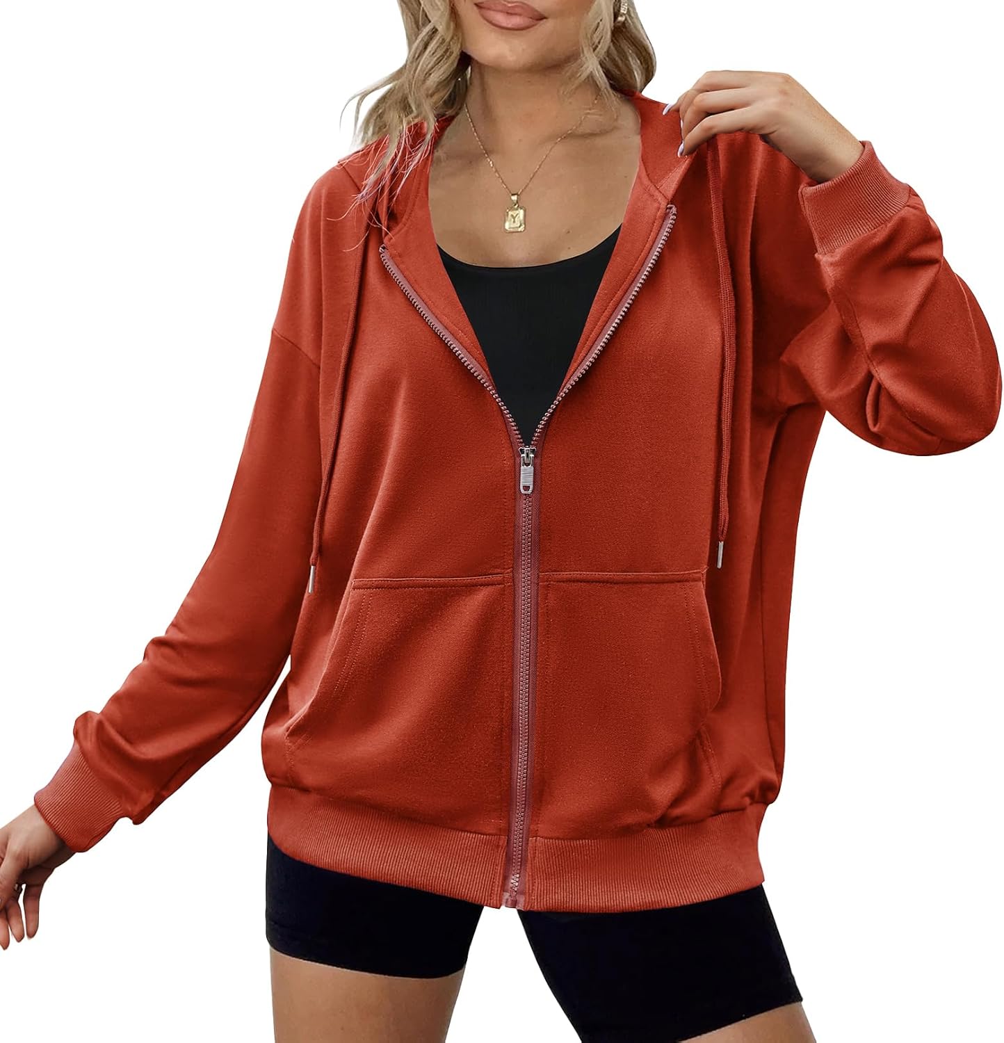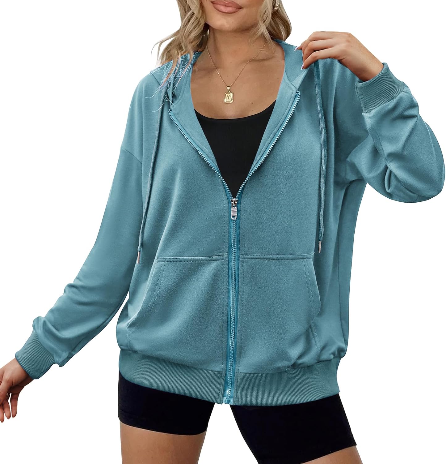 Zeagoo Women’s Lightweight Hoodies Full Zip Up Oversized Sweatshirts with Pockets Long Sleeve Thin Casual Hooded Jackets