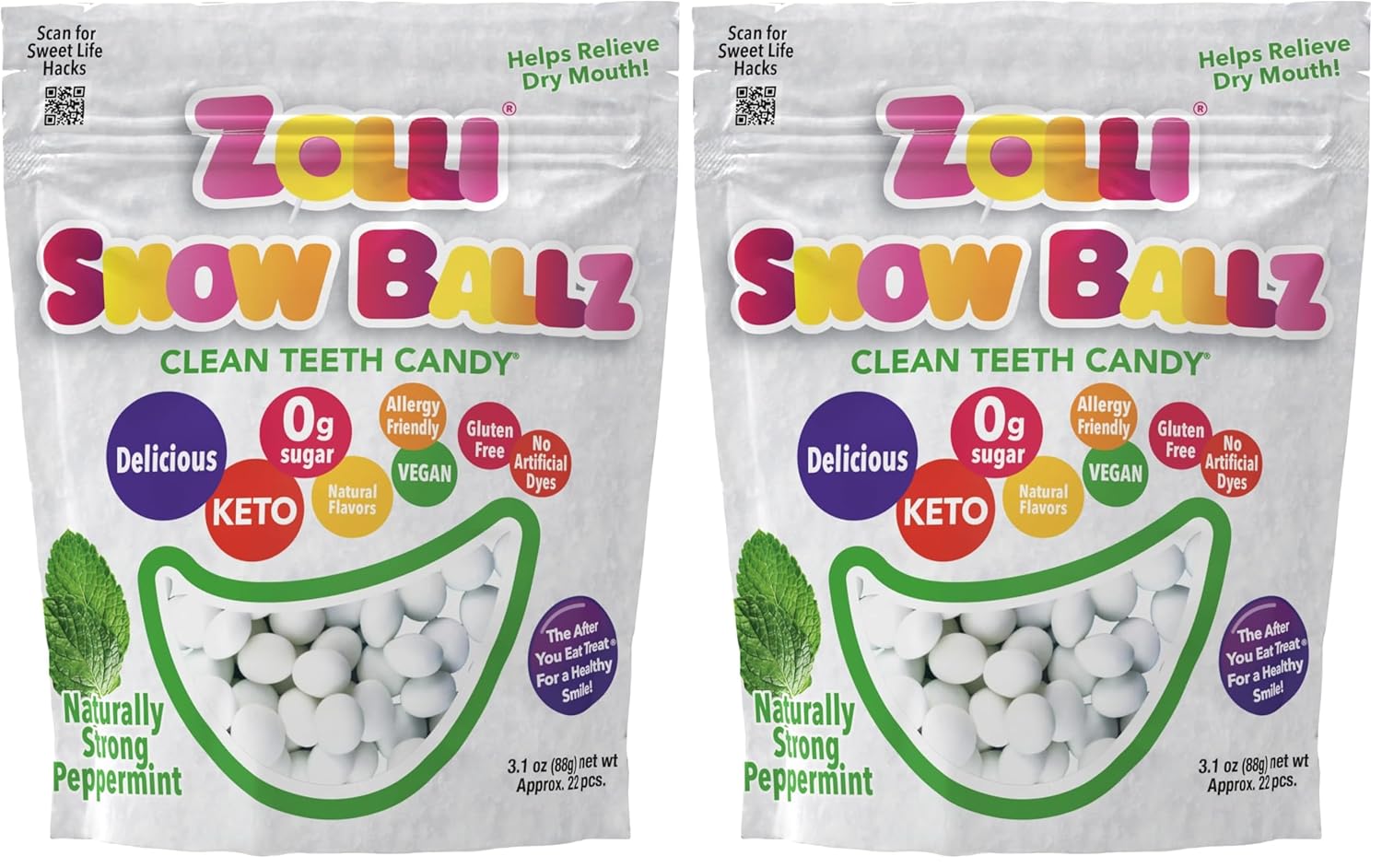 Zolli Snow Ballz Clean Teeth Candy Sugar-Free, Dye-Free, Keto & Diabetic-Friendly, Dentist-Approved Treats for Kids (Peppermint, 3.1 oz)